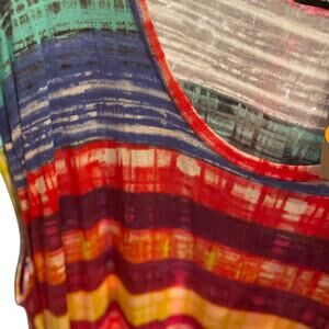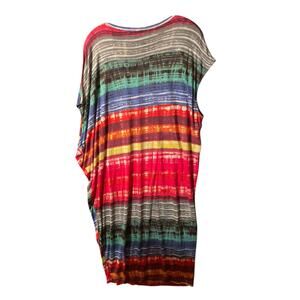 Add a pop of color to your wardrobe with this vibrant multicolor striped tunic dress by ILLord! Featuring a relaxed fit, soft and lightweight fabric, and a flattering scoop neckline, this dress is perfect for casual outings or layering with your favorite accessories. The dolman-style sleeves add a trendy touch, making it a versatile piece for any season. Labeled as a 3X but fits more like a 2X (please check measurements for best fit).