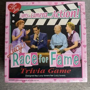 The product is a sealed board game based on the TV show "I Love Lucy," specifically focusing on the "Lucy's Race for Fame" theme. It is a contemporary manufacture game that is likely to be entertaining and engaging for fans of the show. The game board would likely feature various questions and challenges related to the show, allowing players to test their knowledge and compete against one another for ultimate "fame."