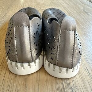 ILSE JACOBSEN Hornbaek Tulip Metallic Silver Floral Slip-On Shoes SIZE US7; EU37