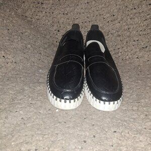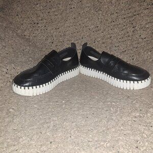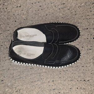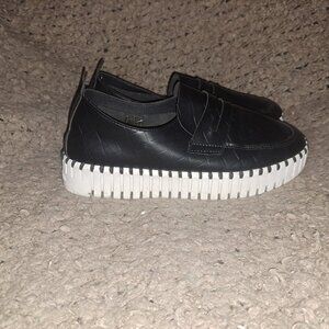 ILSE JACOBSEN-Platform Tulip Faux Black Leather Loafers-Sz 39-Excellent