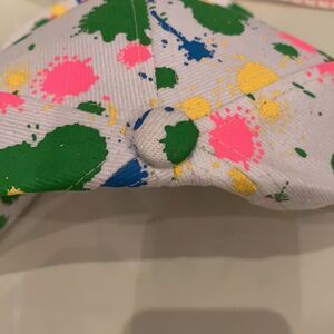 Vibrant “I Love DC” baseball cap is made by Cityhunter. It has pink, green, yellow and blue splashes all over. Not adjustable. Bib of cap is black underneath. Circumference is 23”. No price tag.