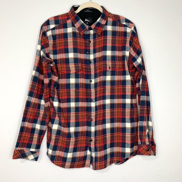 IM Imperial Motion 100% Cotton Red Plaid Flannel Button Down Sz M