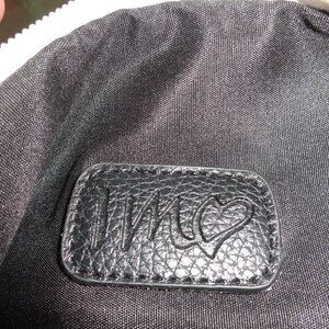 IM Love purse, man made material, zip top, zip front pocket, adjustable strap, gold tone hardware