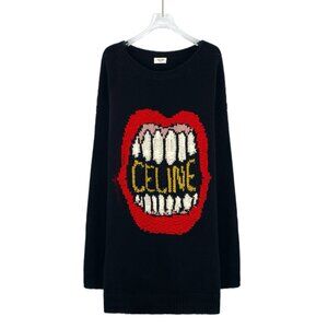 IM0257 Celine Black-mouth letters inlaid wool round neck long-sleeved knitted sweater XS code