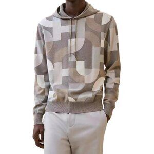 IM0278 Hermes Hermes color-blocked pig nose full-print cashmere hooded drawstring long-sleeved sweatshirt XL size