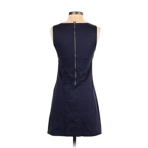 I.MADELINE Dress Small Navy Blue Tan A-Line Shift Cut Out Embroidered