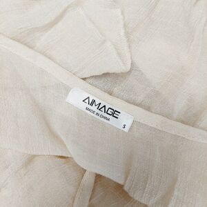 IMAGE Cream Polyester Ruffle Short Sleeve Front Tie Long V Neck Midi Dress 3766