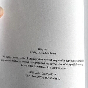 Preowned paperback book, like new condition, IMAGINE The Simple Steps To Success by Dustin Matthews, 198 pages, approximately 6” x 9”