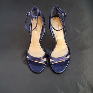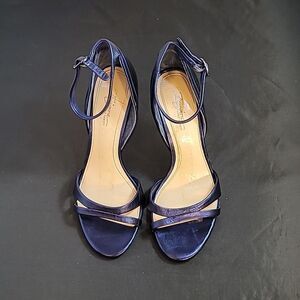 IMAGINE VINCE CAMUTE STILETTOS HEELED ANKLE STRAP SANDAL 81/2M (38/1/2) COLOR DARK BLUE Sparkly and chic, the sandal from Imagine Vince Camuto will be perfect for your next evening out! FEATURES Multiple uppers Back strap closure Round open toe Faux leather lining Cushioned footbed 4"inched covered heel Leather sole THIS ITEMS IS PRE-OWNED EXCELLENT CONDITION WITH ONLY LIGHT SIGNS OF WEAR IF ANY CHECK THE PICTURES