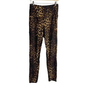 IMAN Black Brown Leopard Animal Print Zip Ankle High Rise Leggings Size Medium