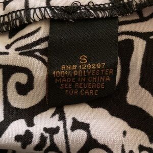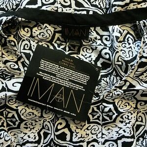 New with tags. IMAN Global Chic mini dress in black and white print. The attached flowy drape material is on the front, while the back retains the straight shift dress silhouette. 100% polyester is not stretchy.