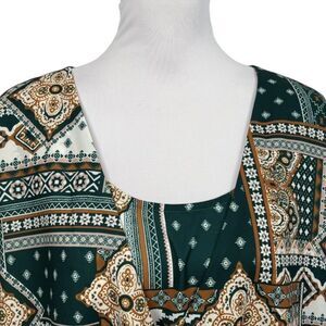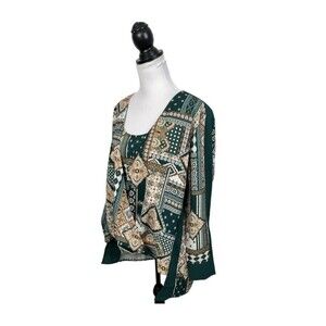 IMAN Blouse Sz XL Green Multicolored Criss Cross Front Floral High Low Pullover