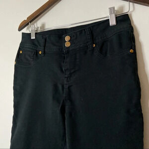 IMAN | Bootcut Slimming Pants Size 6 Double Button Black Wash Stretch Metal
