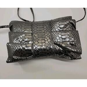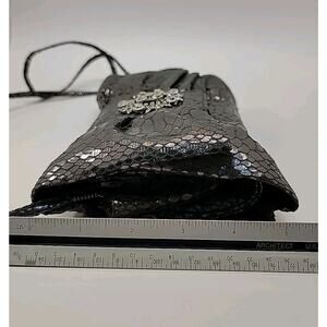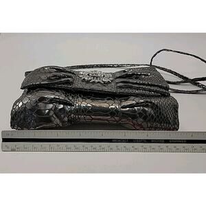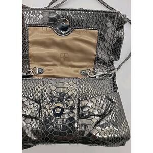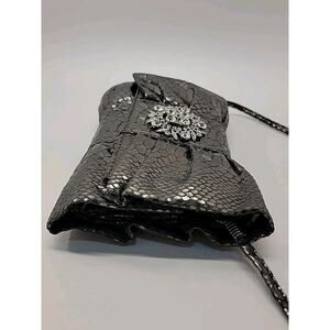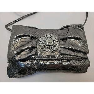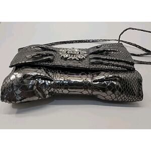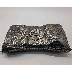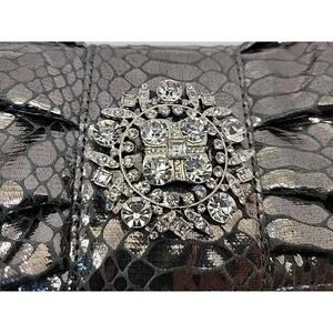 IMAN Evening Bag Purse Rhinestones Removable Strap Silver Metallic Snake Print