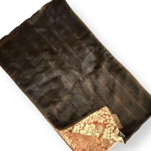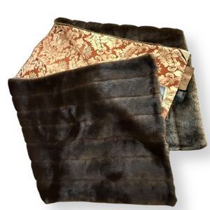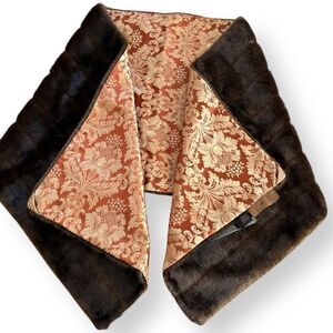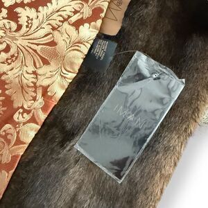IMAN Faux Fur Wrap Shawl Brown Gold Damask Jacquard NWT