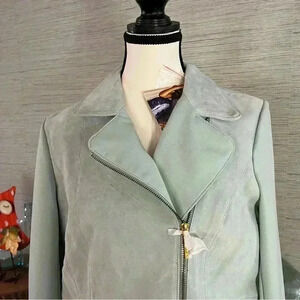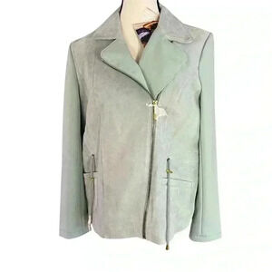 IMAN Genuine Leather Suede Soho Jacket Small Light Green Mint Woman’s Moto NWT