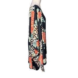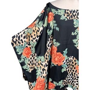 Stunning floral and animal print with a silky feel. Made of 100% polyester and is reversible. Laying flat measures 46" from pit to pit, and 31" shoulder to the seam. Be sure to check out my other plus size listings.