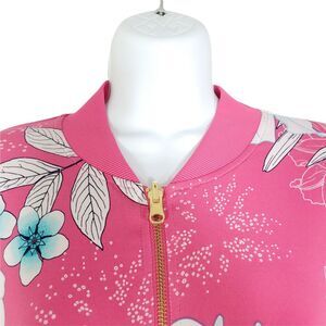 IMAN Global Chic Womens Reversible Jacket Medium Floral Pink Pockets Zipper QVC