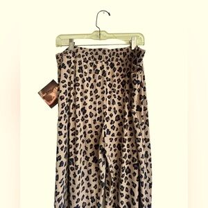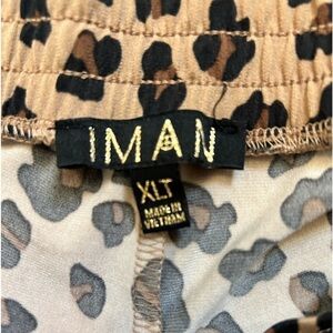 IMAN Global Collection Leopard Print Pull On Wide Leg Jersey Pants Size XL Tall