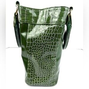 IMAN Green Embossed Crocodile Print with Gold Hardware Shoulder Bag NWOT