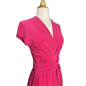 IMAN High Low Pink Cinched Waist Midi Dress, Size Small