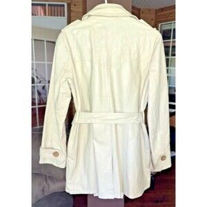 IMAN Leather Trench Coat Jacket Women M Cream Chic Retro Elegant Old World Fall