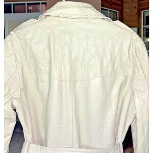 The IMAN Platinum Collection Leather Trench Coat Jacket in Cream Tan is a stylish and versatile women's outerwear piece. Made from 100% genuine leather, this mid-length jacket features a double-breasted closure, belted waist, and various accents like buttons, belts, and buckles. The classic trench coat style is perfect for all seasons, with a lined interior and inner pockets for added functionality. The cream color adds a chic touch to the timeless design, making it a must-have addition to any wardrobe.