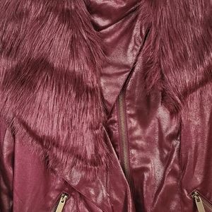 IMAN Luxury Chic Collection Burgundy Faux Fur Detachable Collar Sz L brand new