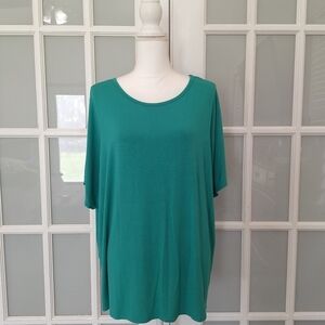 IMAN 2 Pink and Green Short Cap Sleeve Tops Size - 3x
