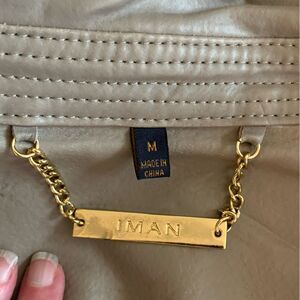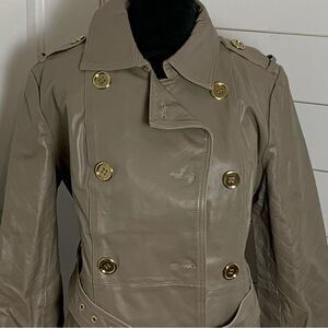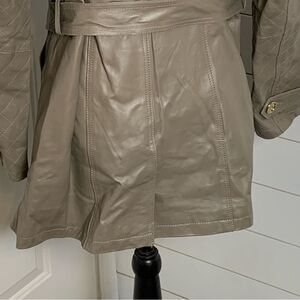 IMAN Platinum Collection Gray Leather Double Breasted Trench Coat size Medium