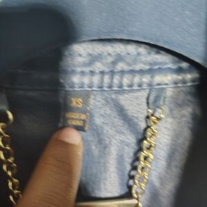 Stylish blue trench coat with a shiny finish. Features double-breasted design and button details. Ideal for a chic look.used in excellent condition
