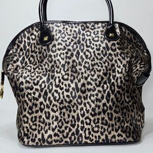 IMAN Travel Leopard Animal Print Tote Overnight and Cosmetic Bag Set