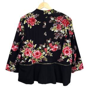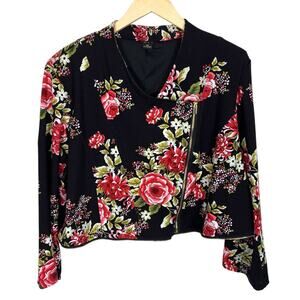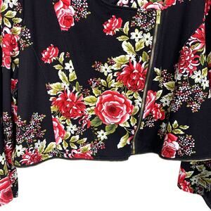 IMAN Women's 2XL Black Pink Red Floral Convertible Motorcycle Jacket