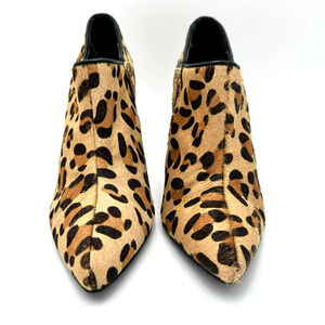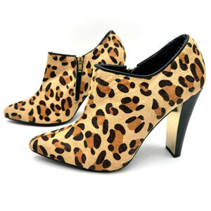 IMAN Women's 7.5 Wide Leopard Print Calf Hair Leather Side Zip High Heel Booties