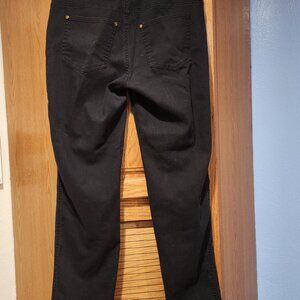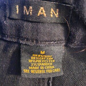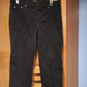 IMAN Women's Gold Buttons Pants Size M Solid Black Straight Leg Stretch Jeans