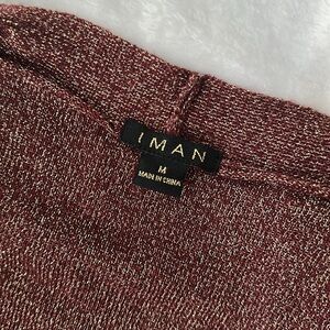 IMAN Womens Open Front Long Casual Chic Cardigan Duster Shimmer Gold Burgundy M