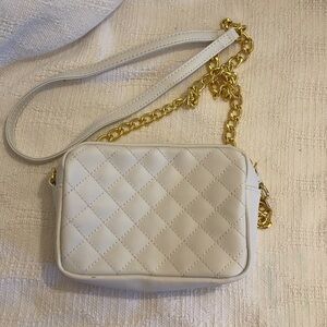 IMAN - white, link chain mini leather crossbody- EUC