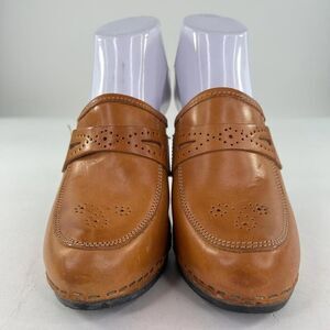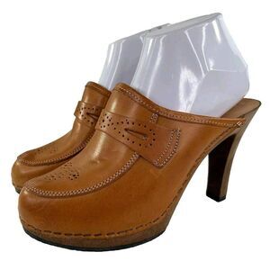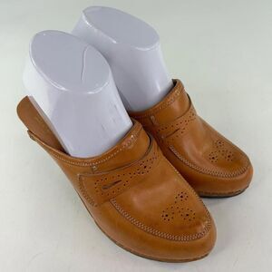 IMBERIAL Women's wooden Heels mules US 7 B Cognac Leather Leather Slide Clogs