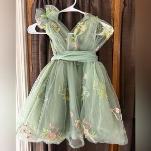 Charming kids dress in a lovely green hue with floral accents. Perfect for special occasions.