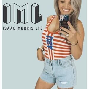 IML ISSAC MORRIS Women's USA Stripes Graphic Bodysuit Red White Striped