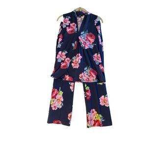 IMNYC Isaac Mizrahi two piece blue floral pants that size xs