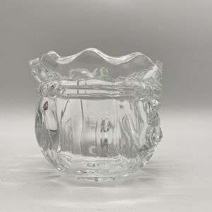 This beautiful candy dish bowl from IMPERIAL CRYSTAL is made of fine 24% lead crystal, featuring a stunning bouquet pattern that adds a touch of elegance to any room. The clear crystal material and fused glassmaking technique give it a unique and vintage look, perfect for any collector or decorator.