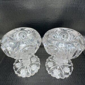 IMPERIAL GLASS OHIO Zipper Heart Clear Heavy Votive Manganese 365nm UV Glow Set