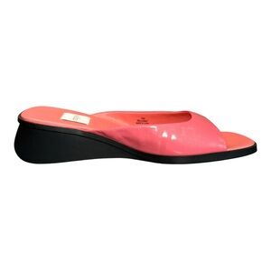 New, never worn. Stylish wedge slide design in a beautiful coral salmon color with a genuine leather upper. Comfortable and easy to wear—perfect for casual or dressy looks.