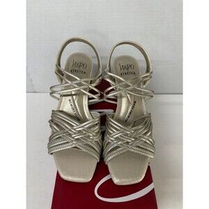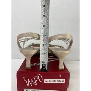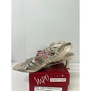 Brand new IMPO Women's Enya Champagne Metallic/Elastic Square Toe Kitten Heel Slip On Slingback Sandal 8M