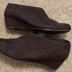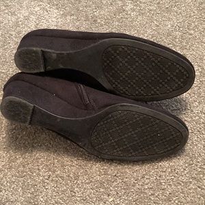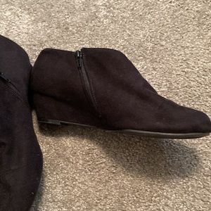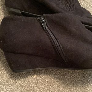 IMPO flex little dress boots- has zippers on side also the left and right sides have a stretchy area for easy on- boots are suede material with the flex sides
