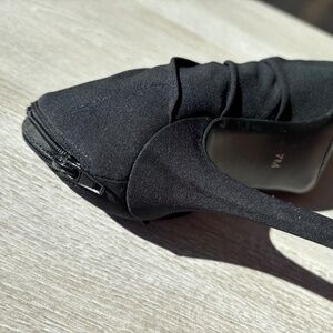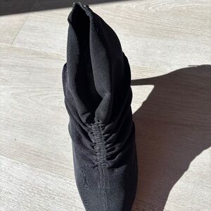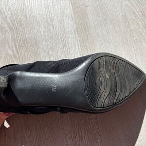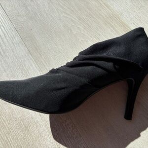 IMPO size 7M black 3” inch heels shoes. Women’s. Stretch around ankle, slouchy look, pointed toe. No box. Excellent condition no tags. Zipper back