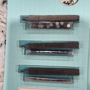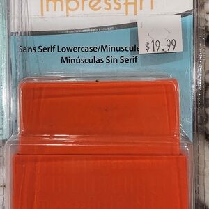 Complete crafting kit by imPRESS. Includes silver stamping blanks and orange letter stamps. Perfect for home design projects.