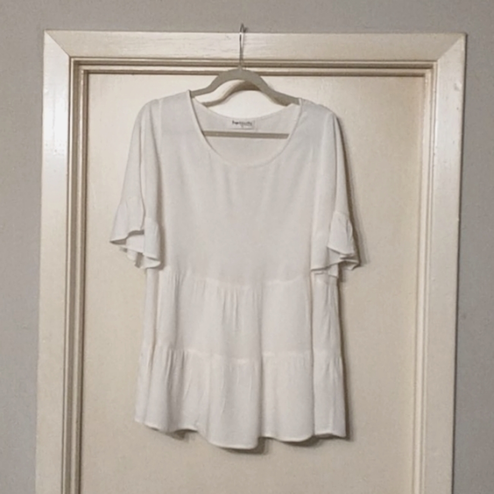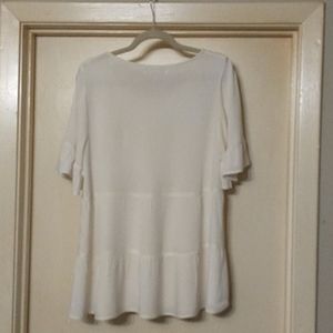 White Ruffled Bell Sleeves, Scoop Neck Cute Top!!!!. 18' arm pit to pit , Sleeves 11', 26.5 long Sz. L. Dress this cutie up or down!!!!! Excellent Condition!!!!