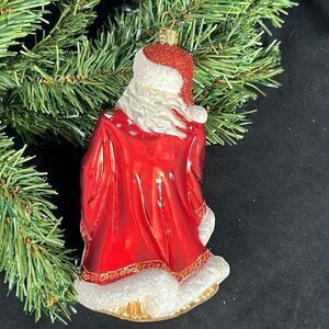 IMPULS Poland Mouth Blown Hand Painted Santa Glass Christmas Ornament in Box